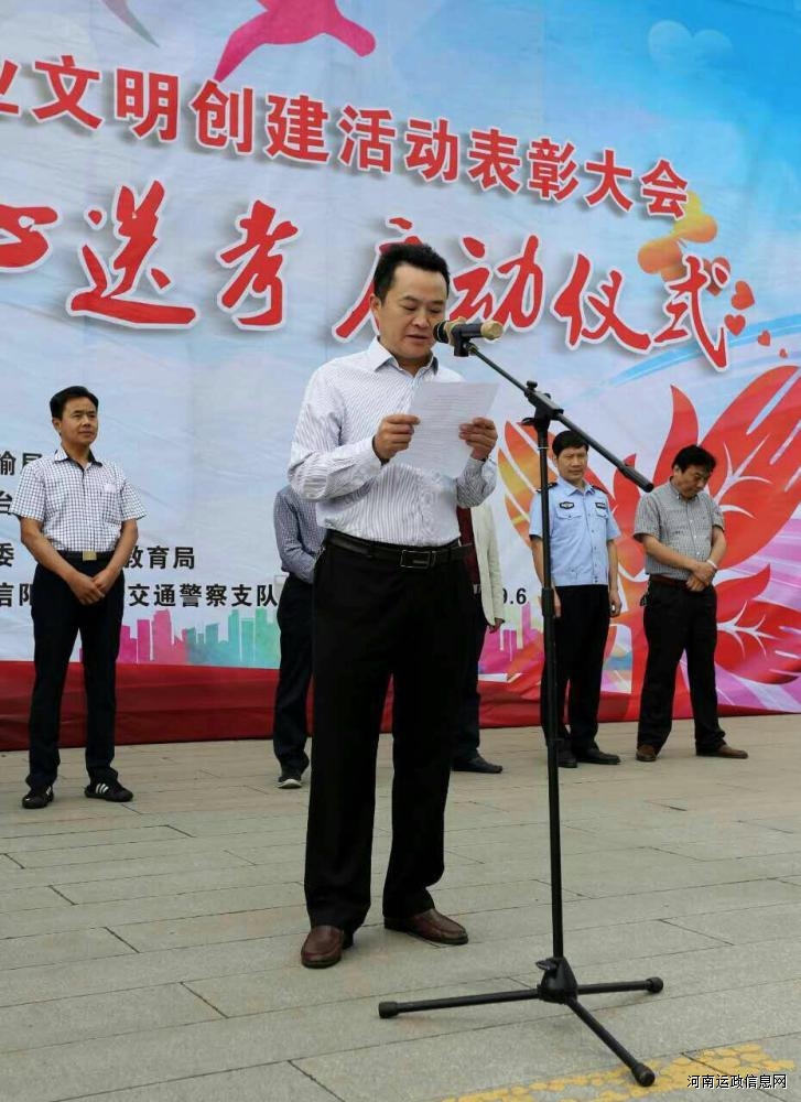 6月6日上午,“信阳市出租汽车行业文明创建活动表彰会暨第十一届爱心送考启动仪式”在羊山百花会展中心召开,标志着我市爱心送考文明公益活动正式启动。